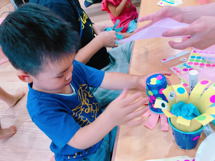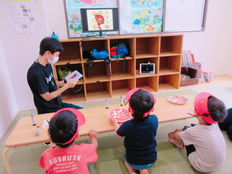 そこで当初はオリジナルの下絵を作り、色々な絵を描いたりシールや折り紙などなど素材を変えて取り組んでいました。が、最近のエコルドのブームは「工作」です。そう、ただ毎日同じ塗り絵をするのでは飽きてしまうし、「またか」となってしまったら取り組み自体が出来ない。吹田教室でやっていた「七夕」の工作アートポン!がとても可愛かったのもあり、各教室にそれが広がっていきました。