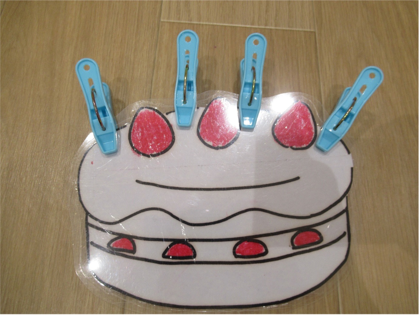 洗濯ばさみをろうそくに見立て、誕生日ケーキをイメージしたようです!